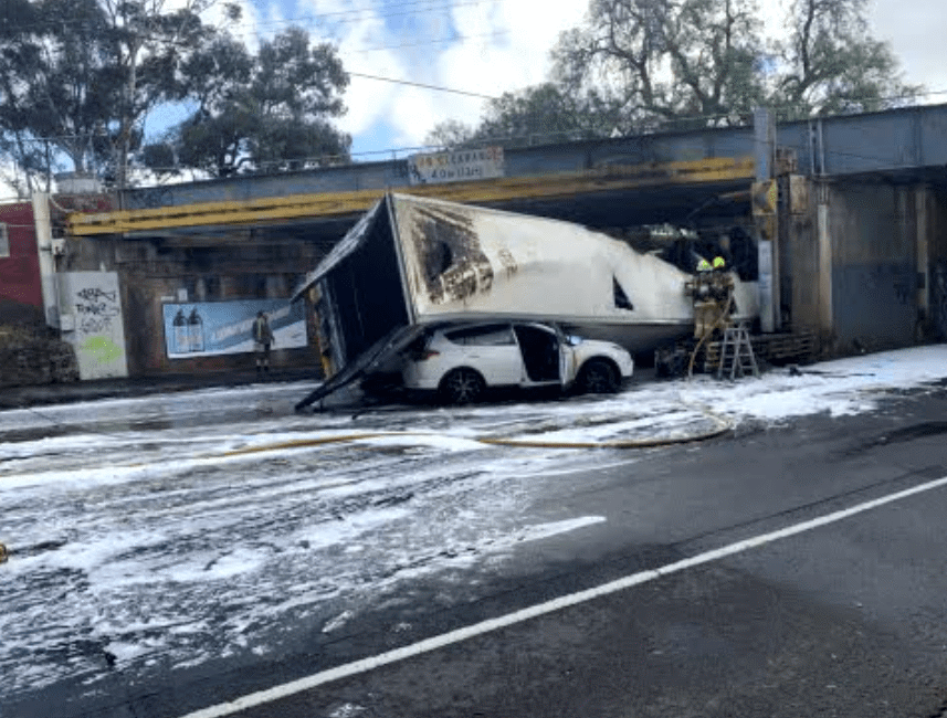 truck hits bridge melbourne